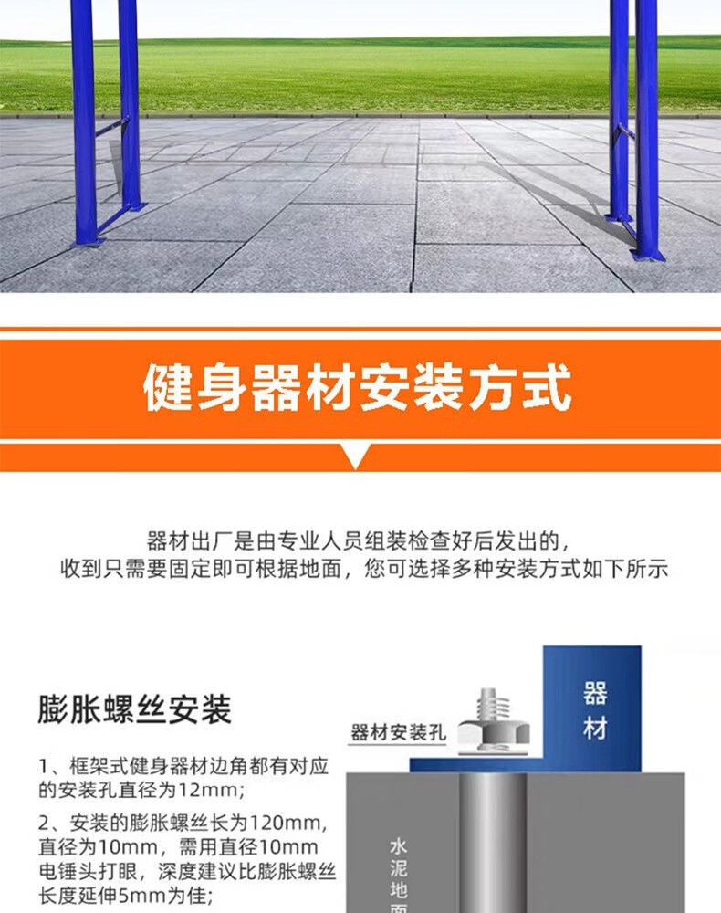 沙漠探戈室外单杠双杠户外高低杠引体向上器小区学校广场公园健身器材路径 单杠90管地埋式1.5米实心横杠