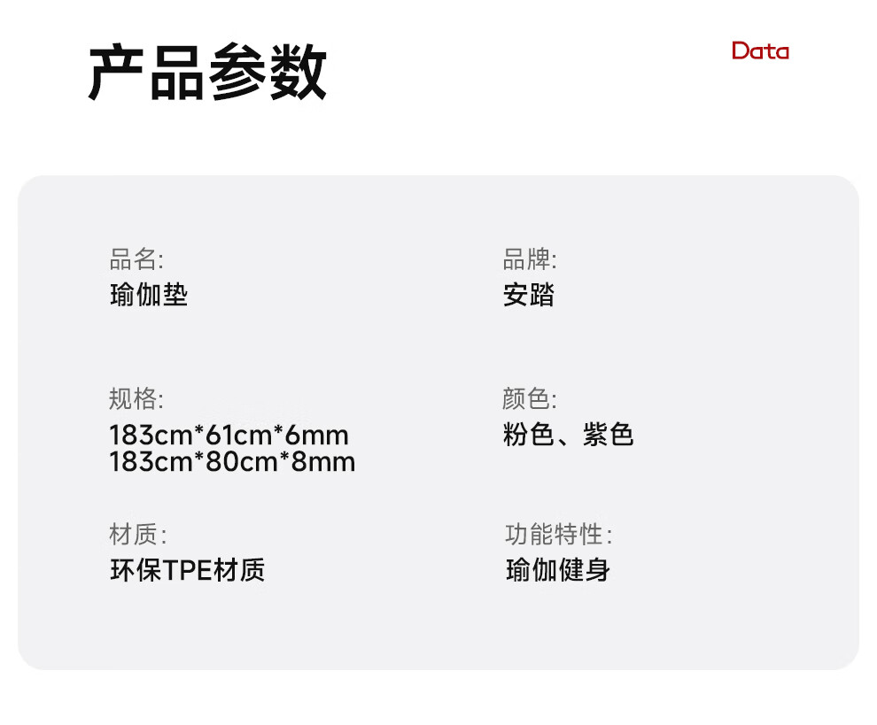 安踏瑜伽垫健身垫家用防滑减震静音加厚加宽隔音女生专用跳操垫子 紫色【185×61cm】礼盒三件套 6mm