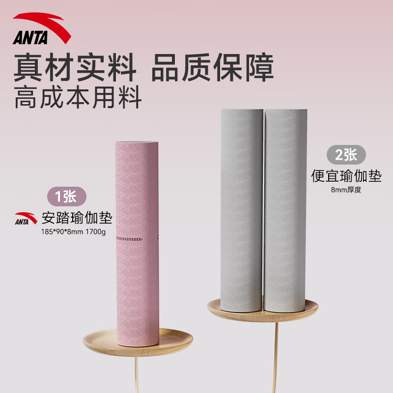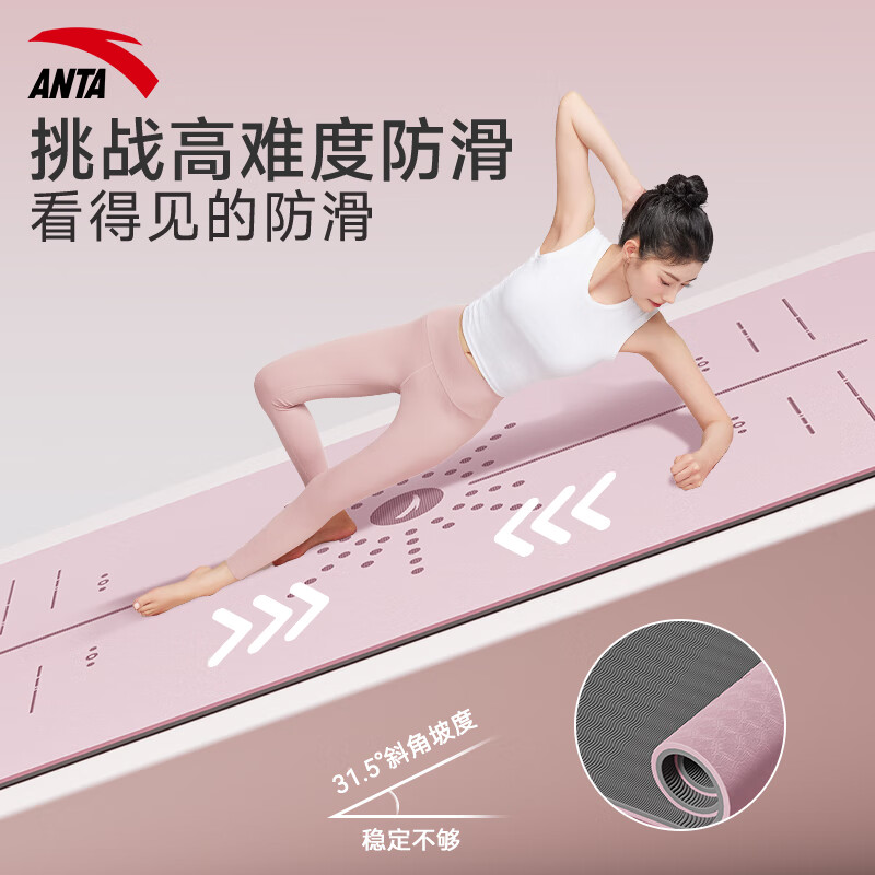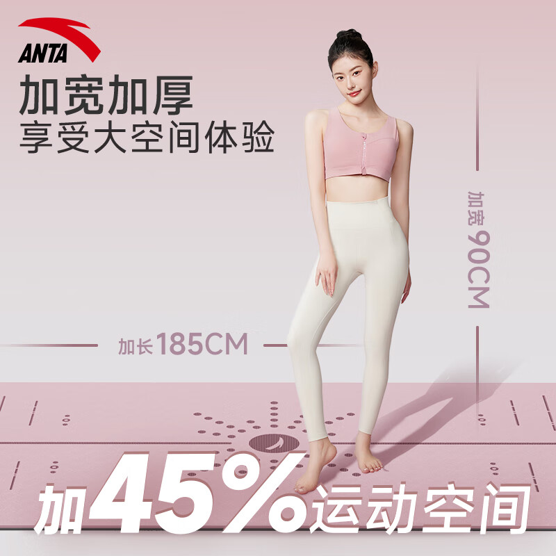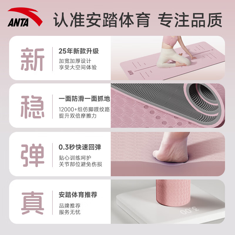 安踏瑜伽垫健身垫家用防滑减震静音加厚加宽隔音女生专用跳操垫子 紫色【185×61cm】礼盒三件套 6mm